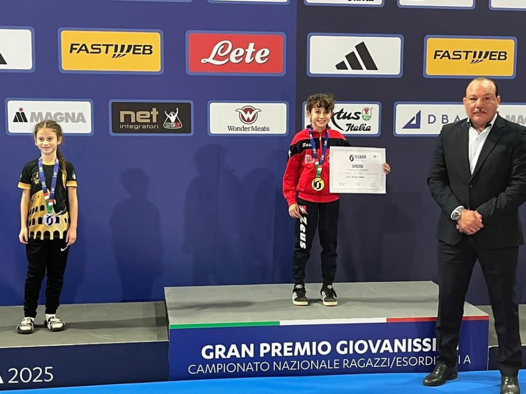 Grande prestazione per gli under11 e under13, che hanno conquistato due titoli italiani sabato al Campionato Nazionale. Nicole Della Monica vince il titolo italiano nella cat. 28 kg U11, mentre Francesco Fergola vince la medaglia d’oro nella cat.52 kg U13. Paolo Ferrero cede solo in finale laureandosi vice campione italiano. Mentre Oscar Antonello e Nicolas Torriente salgono sul 3º gradino del podio guadagnando una bel bronzo. Curletto e Enache nonostante un ottima prestazione rimangono fuori dal podio.